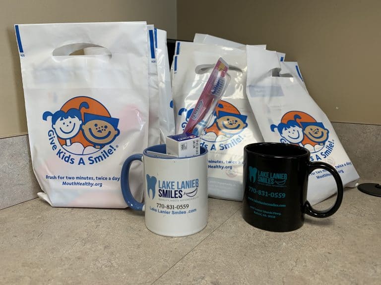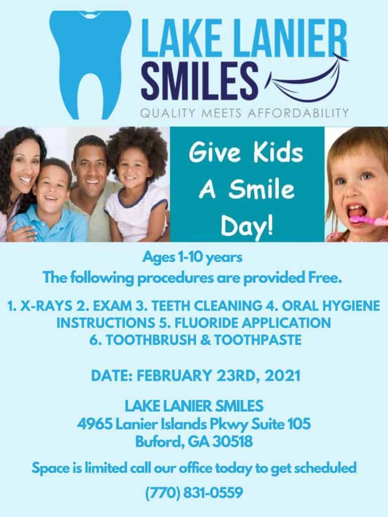 This is our 3rd Annual Give Kids A smile Event at LAKE LANIER SMILES. February is a National Children’s Oral Health Month and we promote the benefits of good oral health to children and their caregivers this whole month.