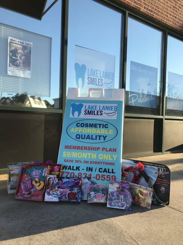 This month Lake Lanier Smiles was a drop off location for Toys for Tots. Our community was so generous this month and we ended up donating over 50 toys! Some of the toys we received were left outside one early morning and we had no idea who to thank. Others were donated by our shopping center neighbors and of course our lovely patients. Shout out to all of our patients and people of Buford who contributed to this amazing cause.